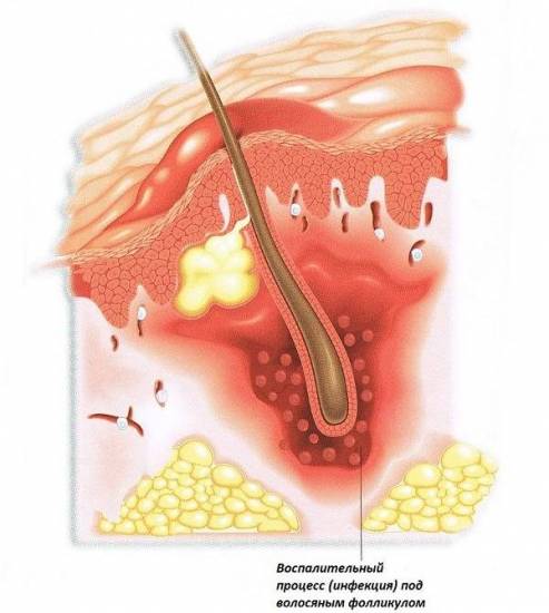 Фурункул начинает абсцедировать (когда к воспалительному процессу присоединяется вторичная инфекция), если на его поверхности отсутствует пузырек, необходимый для эвакуации некротических элементов. Гной начинает размягчать тканевые структуры, расплавляя их и провоцируя обширное воспаление глубоких слоев кожи. Абсцедировавший фурункул способен привести к заражению гнойными массами мышц, жировых структур и кровеносных сосудов.