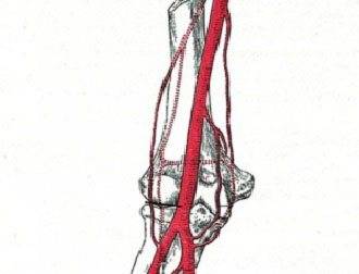 Кроме кольцевой связки есть еще межкостная перепонка предплечья, которая также фиксирует положение локтевой и лучевой кости относительно друг друга. У перепонки есть небольшие отверстия, сквозь которые проходят сосуды и нервы.