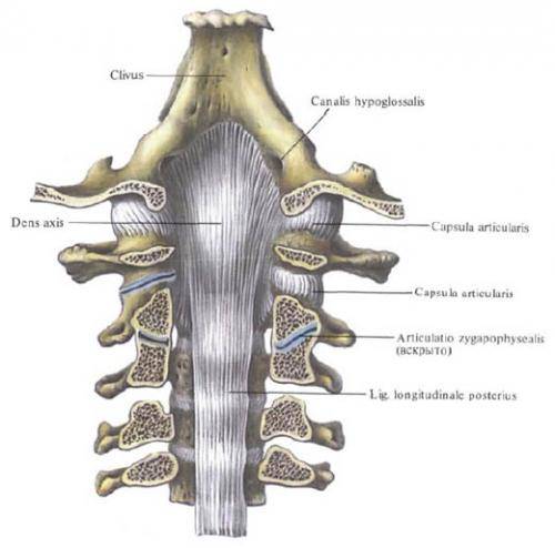 С телами позвонков она соединяется рыхло, причем в прослойке соединительной ткани между связкой и телом позвонка залегает венозное сплетение. Поверхностные пучки этой связки, как и передней продольной связки, длиннее глубоких.