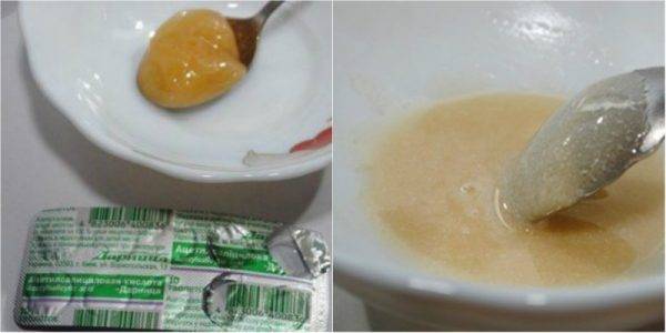 - Мед с Аспирином. Взять 2 столовые ложки меда, 15 таблеток аспирина. Аспирин растереть в порошок и смешать с медом. Полученную массу нанести на коленный сустав под полиэтиленовую пленку и под согревающий материал (желательно из шерсти). Время воздействия 7-8 часов. Рецепт актуален во время обострения воспалительного процесса при артрозе коленного сустава 3 степени.