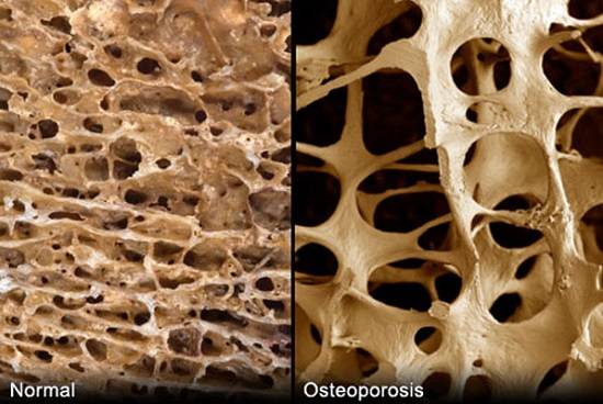 При остеопорозе существенно уменьшается плотность костей, то есть они становятся достаточно хрупкими.