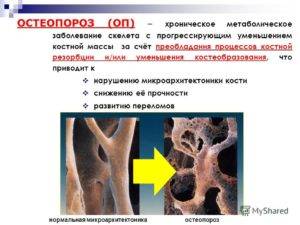 Структура костей в нормальном состоянии и при поражении остеопорозом