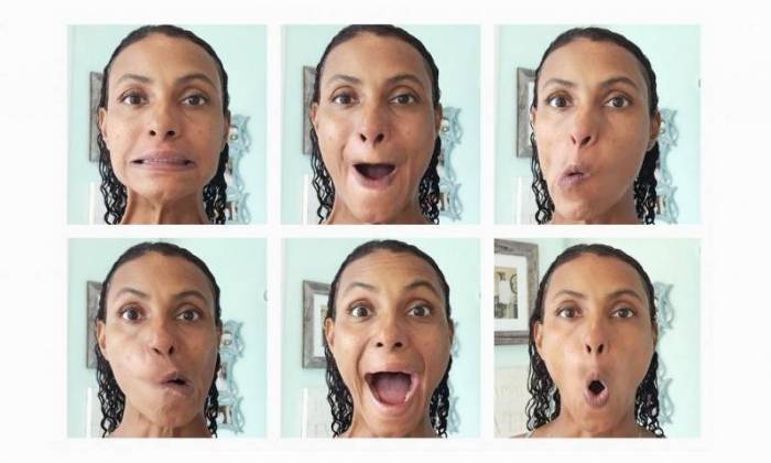 - Приоткройте рот, затем вытяните губы, чтобы немного показались зубы. Затем протяжно произнесите «а». После этого быстро улыбнитесь. Повторите все действия по порядку 15 раз.