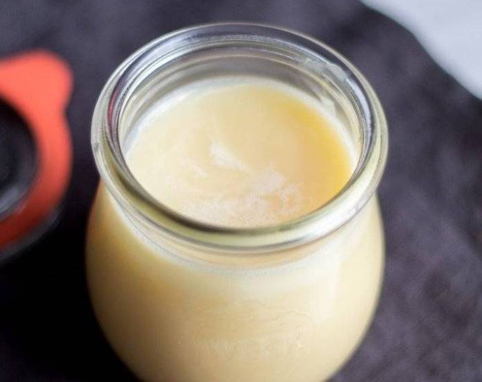 Барсучий жир по умолчанию должен представлять собой что-то похожее на сгущенное масло светлого цвета похожего на кофе с молоком и должен отличаться очень характерным для данного продукта терпким запахом.