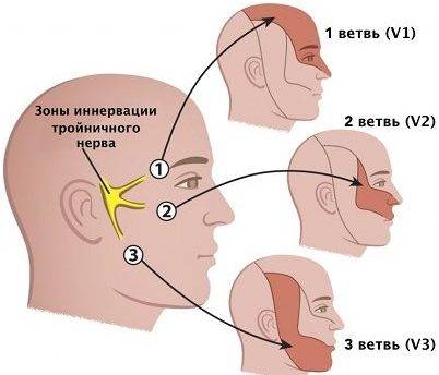 - – невралгия нерва – это заболевание, которое сопровождается болями в области лица и отдельно в зонах поражения болезнью, случаются частые припадки жгучей боли в зависимости от серьезности болезни.