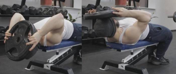 Разгибание шеи лежа на скамье с блином