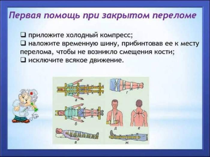 Первая медицинская помощь при закрытом переломе