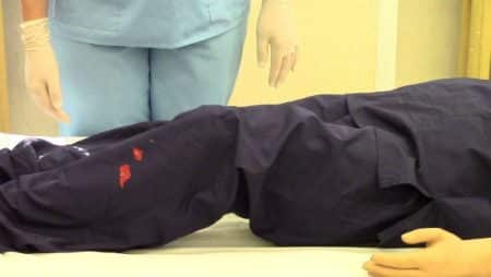 - обеспечение полного обездвижения. Лучше пострадавшего уложить на горизонтальную твердую поверхность лицом вниз;