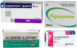 Прописанные препараты улучшают кровообращение, способствуют нормализации снабжения кислородом головного мозга. Рекомендованы инъекции с витаминами E и B. Назначаются и другие препараты. Они представлены в табличке.