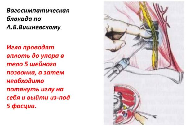 Вагосимпатическая шейная блокада была предложена нейрохирургом Вишневским (позднее профессор Бурденко скорректировал технику введения, но в нейрохирургии по-прежнему применяются оба способа).