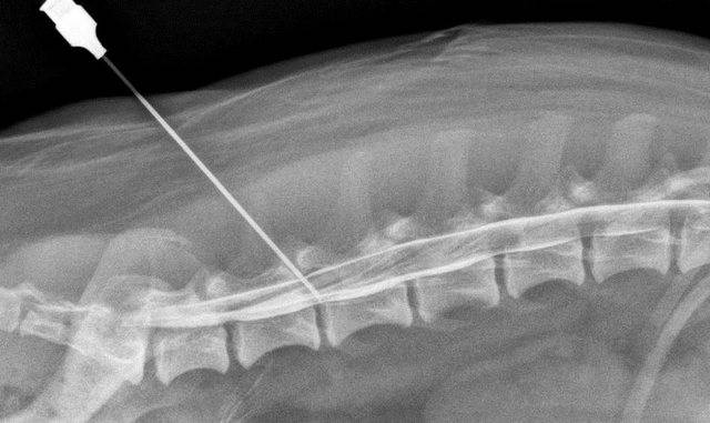 - Подготовительный этап. В организм пациента вводится контрастное вещество, после чего врач флюороскопом просвечивает распространение его по позвоночнику.