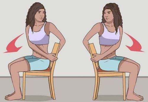 Это упражнение замечательно подходит, когда путешествуете в машине или самолете и хотите предотвратить спазмы в нижней части спины. Удерживая подлокотник сиденья левой рукой и держа спину прямо, поверните правую сторону тела к подлокотнику и удерживайте такое положение в течение 1 минуты. Затем сделайте тоже самое в другую сторону. Примечание: для получения бонусных балов постарайтесь, чтобы правый локоть вышел за границу левой ноги и наоборот.