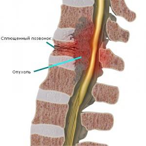 Если опухоль растет внутрь позвоночного канала, она сдавливает спинной мозг и вызывает снижение или полное отсутствие чувствительных и двигательных реакций ниже уровня сдавления.