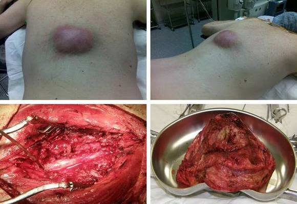 При росте кнаружи опухоль может сдавливать или прорастать в кровеносные сосуды, проходящие вдоль позвоночника, и в корешки спинномозговых нервов, что проявляется различными сосудистыми, двигательными и чувствительными нарушениями.