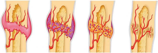 - Стадия перестройки костной ткани – характеризуется активизацией процессов кровообращения и кровоснабжения в зоне повреждения, формированием полноценного костного вещества.