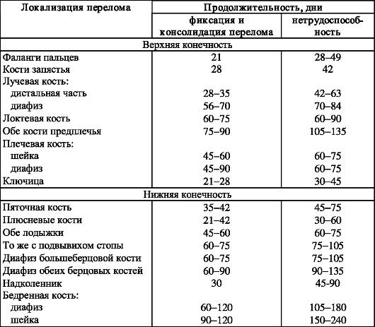 Сроки консолидации зависят, в первую очередь, от степени тяжести и локализации травматического повреждения. Определить приблизительное время срастания травматологам помогает специальная таблица. В среднем, первичная костная мозоль образуется на протяжении 4–5 недельного срока. Для формирования вторичной костной мозоли требуется 5–6 недель. Однако, полное восстановление поврежденной костной ткани — процесс сложный и длительный, иногда занимающий по времени несколько лет.