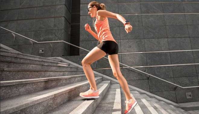 - Интенсивная ходьба на степ-платформе, подъем и спуск по лестнице,