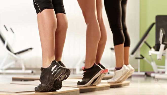 - Встаньте на ступеньку лестницы так, чтобы пятки не имели опоры.