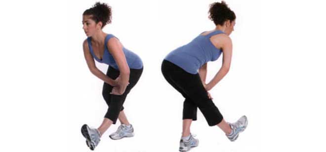 Ногу отвести назад, плотно прижать ее к полу, сделать наклон вперед. Переднюю ногу согнуть, переместив на нее вес тела. Зафиксироваться таким образом на некоторое время, спину держать ровно.