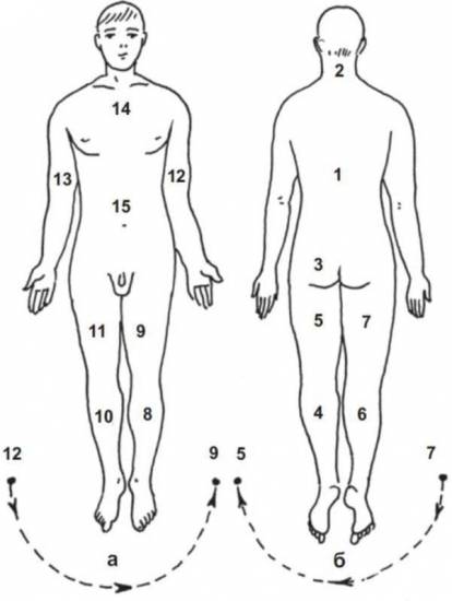 8. Важно научиться сочетать слабое и сильное воздействие на мышцы спины. Между этими манипуляциями не должно быть перерыва — один приём должен систематически выполняться от 5 до 8 раз, после чего можно переходить к следующему массажному движению.
