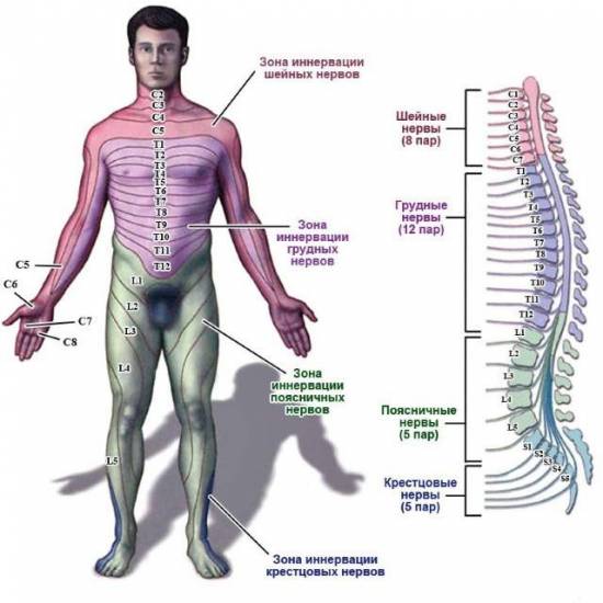 3 стадия развития болезни помимо боли может характеризоваться признаками сдавления межпозвонковым диском нервных корешков – нарушением чувствительности в зонах, за которые они отвечают: