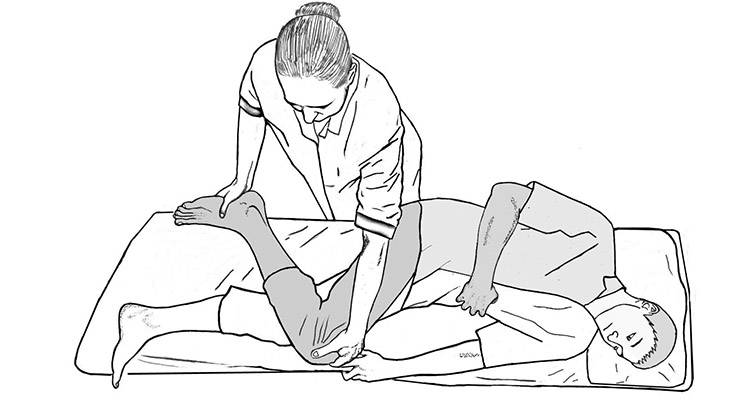 - Завершающий этап. Легким потряхиванием коленного сустава, поглаживанием заканчивают сеанс.