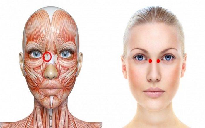 Люди инстинктивно давят на участок между глазами при усталости, а это биологически активные точки организма.