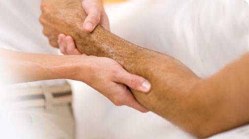 - Боль. Появляется сначала редко, только при движении, во время сгибания рук, ходьбе. Носит слабый характер и проходит сама, без приема медикаментов. По мере прогрессирования боль становится всё сильнее, на последних стадиях ее сложно контролировать даже уколами. Болезненные ощущения от локтей отдают вверх по всей руке – в шею, бок, спину, лопатки.