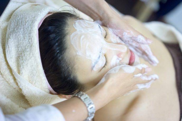 - Кожа лица очищается при помощи скраба, тоника или молочка и вытирается бумажным полотенцем.