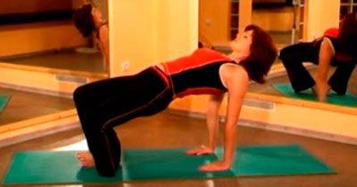 3.Исходное положение то же самое. Руки положите ладошками на пол, поднимайте таз 10–15 раз.
