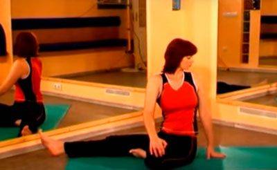 12.Ноги соедините «по-турецки», руки опущены перед собой на пол на всю ладонь. Опускайтесь вперед, при этом расслабляйте поясницу как можно больше.