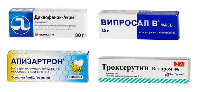 - обезболить место с помощью мазей на основе диклофенака, индометацина или других НПВС;