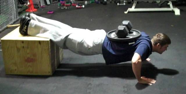 6. Отжимания с утяжелением. Этот вид отжимания по своей нагрузке аналогичен жиму лежа.
