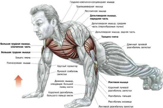 КАКИЕ МЫШЦЫ ЗАДЕЙСТВУЮТСЯ ПРИ ВЫПОЛНЕНИИ ОТЖИМАНИЙ С КОЛЕН?