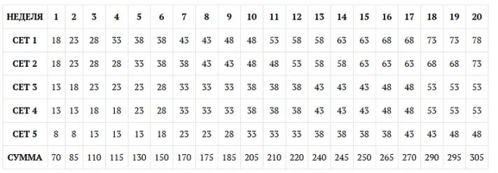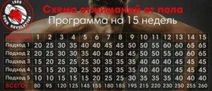 Методика №2: Схема увеличения отжиманий от пола за 15 недель