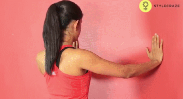 3. Отжимания от стены. При изменении угла наклона уменьшается либо увеличивается нагрузка, этот вариант часто используется во время тренировок женщинами и детьми.