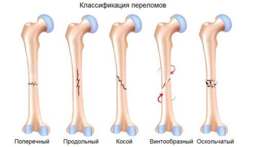 По видам переломы бывают следующими: