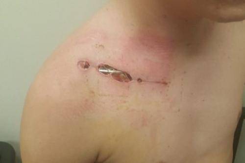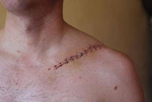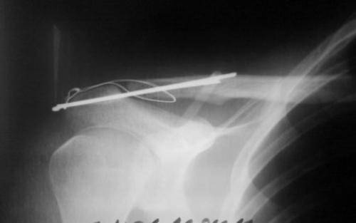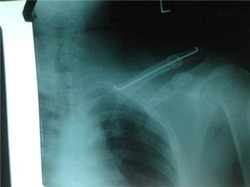 Удаление спицы из ключицы. Концы спиц при переломе ключицы причиняют жгучую боль и выпирают под кожей