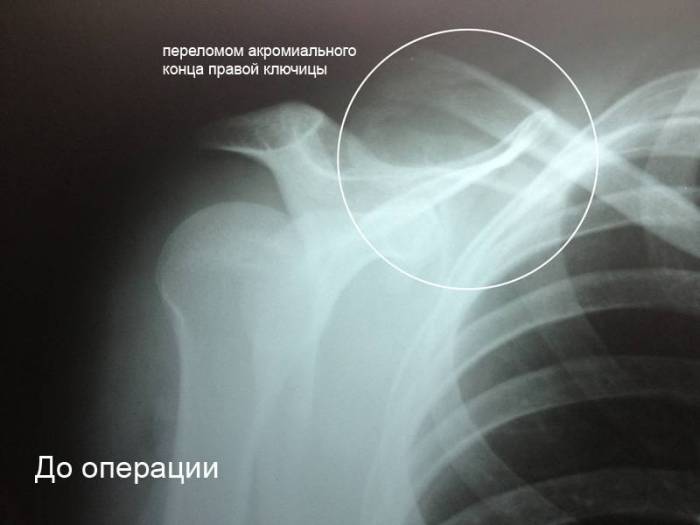 - травма наружной трети кости, или перелом акромиального конца ключицы.