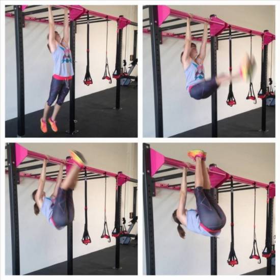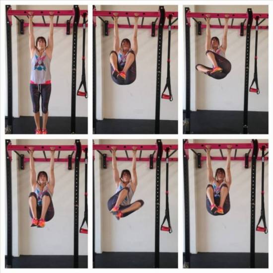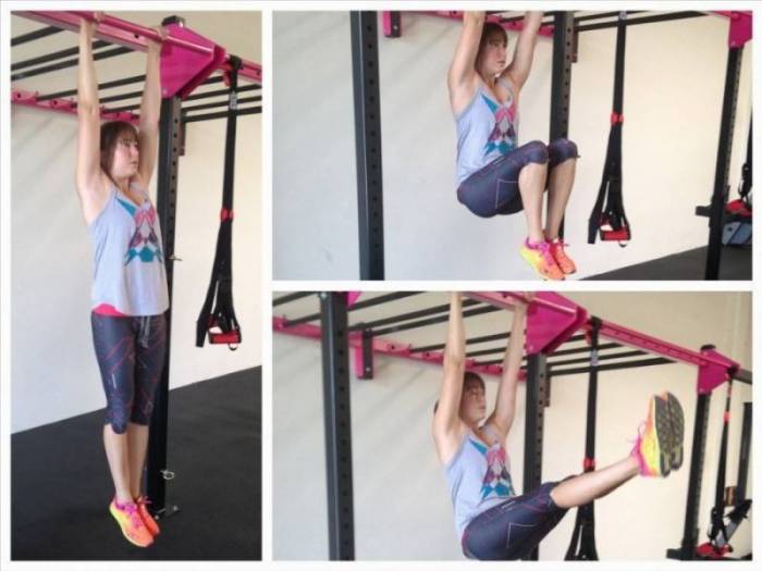 Это движение напоминает прошлое, но только теперь мы поднимаем колени выше и ближе к конечной цели — перекладине. Самое главное здесь — плавно качаться и поднимать колени выше каждый раз.