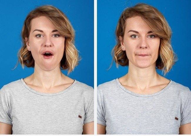 Чтобы на первых порах облегчить себе задачу, вы можете выполнять только движение челюстью. Уже одно это позволит вам значительно повысить тонус мышц подбородочной области. Но дополнительное запрокидывание головы даст значительно большую нагрузку и более выраженный эффект.