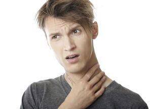 Причина неприятных ощущений в горле кроется в раздражении нервного окончания, который проходит вдоль шейных позвонков. Чувство, что что-то душит, постепенно нарастает. Сперва может ощущаться нехватка воздуха, а затем дает о себе знать вся симптоматика остеохондроза: