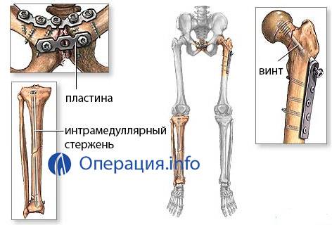 Наиболее уязвима к перелому диафиза бедренная кость (в молодом возрасте травма чаще всего встречается у профессиональных спортсменов и поклонников экстремального вождения автомобиля). Для скрепления отломков бедренной кости используют разнообразные по конструкции элементы (в зависимости от характера травмы и ее масштаба) – трехлопастные гвозди, винты с пружинным механизмом, U-образные конструкции.