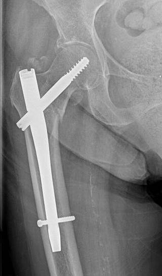 После успешной операции и сращения перелома, как правило, удаляют динамический винт и увеличивают нагрузку на конечность, для полного сращения перелома. Через 1 год после операции, когда перелом полностью сросся, в плановом порядке выполняется удаление винтов и стержня.