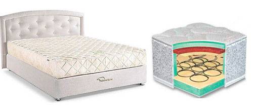 | Отдельного внимания заслуживает модель «силуэт», которая оснащена чехлом зима-лето. В основе конструкции лежит блок независимых пружин. В качестве наполнителя с одной стороны выступает пенополиуретан, с другой каннабис. | |