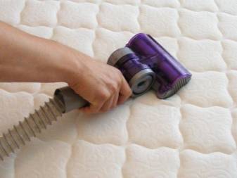 Проводить чистку лучше в тёплое время года. Пыль, осевшая в матрасе, может увеличить его вес до 10%. Удалять её нужно мощным пылесосом методом сухой чистки. Матрас, наполненный кокосовой койрой разрешается выбивать хлопушкой. Съёмный чехол стирать в режиме деликатной стирки или вручную, несъёмный – мыльным раствором.