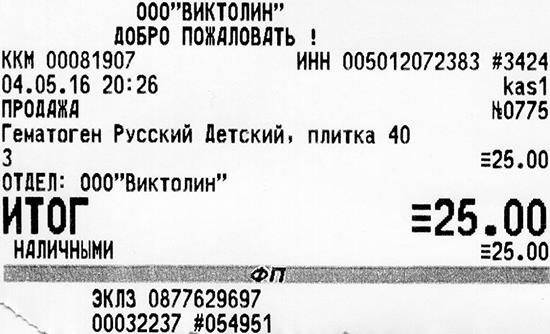 К сожалению, кассир забыла дать мне чек, поэтому я был вынужден вернуться 4 мая, чтобы купить что-нибудь дешёвое, чтобы мне дали чек. Я купил племяннице детский Гематоген: