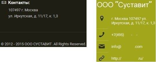 Производитель Медицинский центр Сандра имеет связь с продавцом ООО «Суставит». Во-первых, генеральным директором и учредителем обеих компаний является Посельская Вера Николаевна. Во-вторых, во всех трёх декларациях о соответствии: 1. ТС N RU Д-RU.АИ13.В.01714; 2. ТС N RU Д-RU.АИ13.В.01716; 3. ТС N RU Д-RU.АИ13.В.01717 указано, что фактический адрес местонахождения Медицинского центра Сандра является не г. Москва, ул. Бойцовая, д. 27, корп. 1, как указано на сайте Федеральной налоговой службы, а г. Москва, ул. Иркутская, д. 11/17, к 1, 3. И если мы зайдём на сайт ООО «Суставит», то обнаружим, что у них точно такой же адрес: