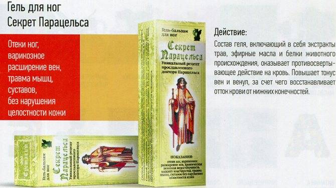 В рекламном листке о геле для ног Секрет Парацельса написано: