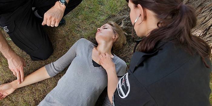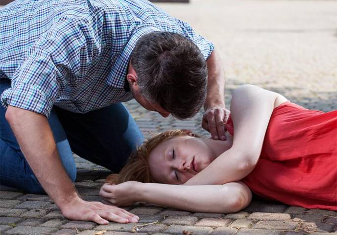- Нужно создать раздражительные условия для кожи человека, потерявшего сознание. Для этого нужно обрызгать его кожу прохладной водой, протереть водой за ушами, похлопать по щекам. Обязательно нужно обеспечить пострадавшему приток воздуха, для этого расстегивается или растягивается ворот. Если у кого-то из присутствующих есть нашатырь, то можно дать его понюхать потерявшему сознание.